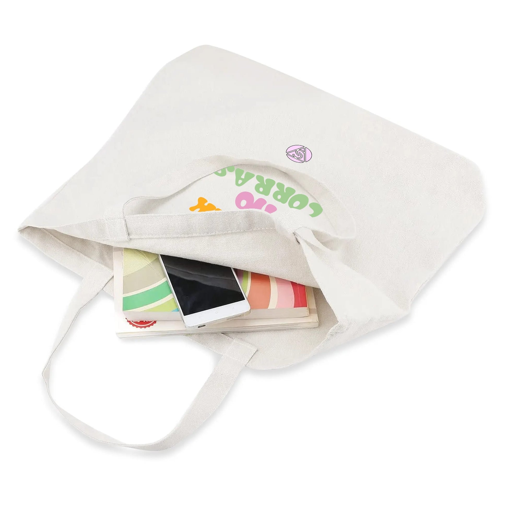 Bolso tote ecológico elaborado con 100% algodón. Suave al tacto, resistente y de gran capacidad, ideal para acompañarte en tus actividades diarias.
